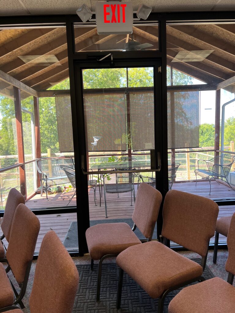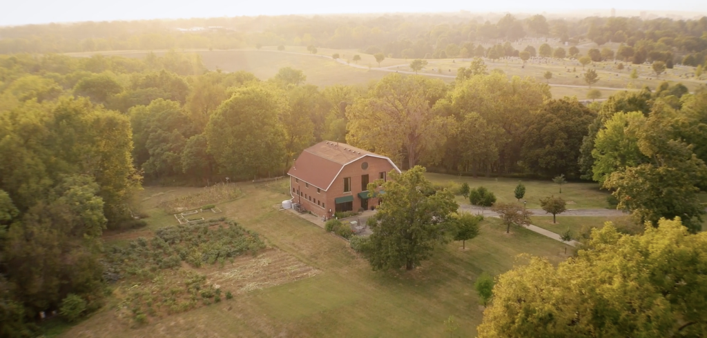 The Earth & Spirit Center is located on 27 picturesque acres of fields and woods within the Highlands neighborhood of Louisville, Kentucky. Situated behind the Sacred Heart Passionist monastery, our red brick Barn was built in 1915 and has since been renovated into a conference center. The facility, which is fully accessible, includes a meeting room with a maximum capacity of 70 people, a kitchenette (microwave oven, sink, and refrigerator, but no stove), two restrooms, and a screened porch. The spacious property features outdoor gathering areas, nature trails with meditation benches throughout, a natural spring, scenic wetlands, and many other natural features.